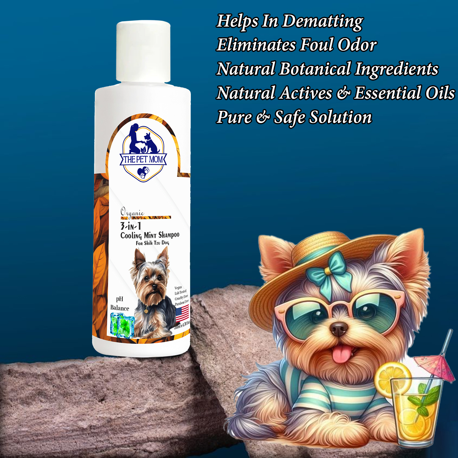 The Pet Mom 3 in 1 Cooling Mint Shampoo For Shih Tzu Dog is a refreshing and deep cleansing formula that is loaded with all-natural goodness of Vitamin-E, Peppermint Oil, Neem Extract, Lemon Extract, Rosemary Leaf Oil, Aloevera Extract, Honey, Coconut Oil, and other beneficial ingredients to offer the care your pet deserves. These ingredients work together to relieve skin irritation, promote a healthy coat, and calm skin rashes. Not just this, it also replaces bad odor with good odor without stripping off any natural oils leaving your shih tzu dog’s coat shiny and smooth.