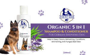 The Pet Mom Organic 5-in-1 Shampoo And Conditioner For German Shepherd Dog is a refreshing, conditioning, and deep cleansing formula that is loaded with the all-natural goodness of India, Aloe Vera, Lavender, Glycerin, Rosemary Oil, Rosemary Leaf Extract and other beneficial ingredients to offer the care your dog deserves. These ingredients work together to relieve skin irritation, promote a healthy coat, calm skin rashes and let your dog live happily. Not just this, it also replaces bad odor with good odor without stripping off any natural oils and Leaf Extract leaving your german shepherd dog’s coat shiny and smooth.