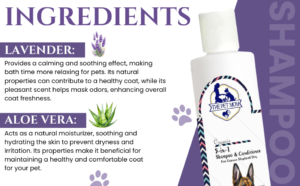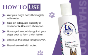 • DIRECTIONS FOR USE: Wet your dog’s body thoroughly with water. Take an adequate quantity of Lavender & Aloe vera shampoo. Massage it smoothly against your dog’s coat to form a rich lather. Continue the same for upto 5min. Then rinse well with water.