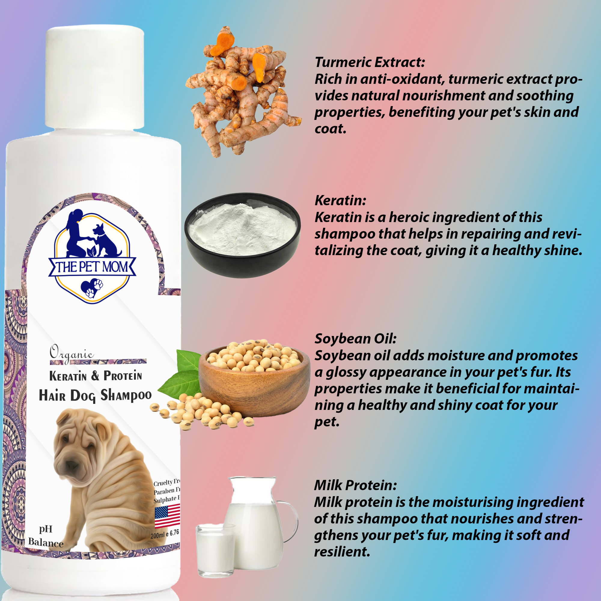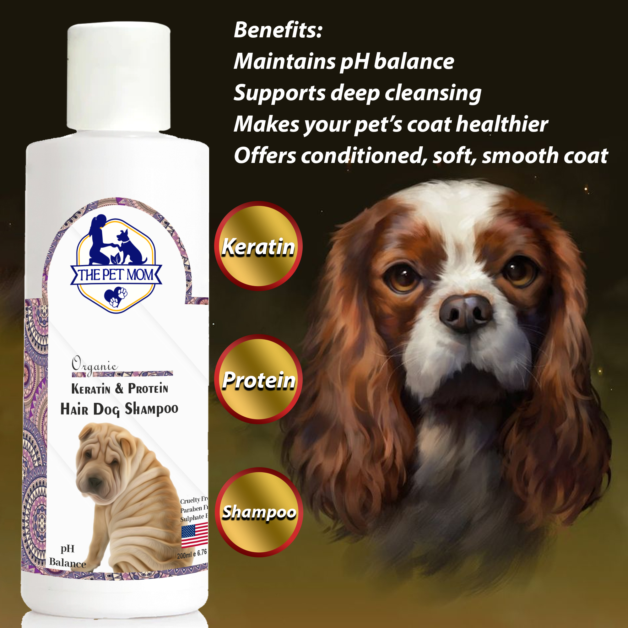 Keratin: Keratin is a heroic ingredient of this shampoo that helps in repairing and revitalizing the coat, giving it a healthy shine.