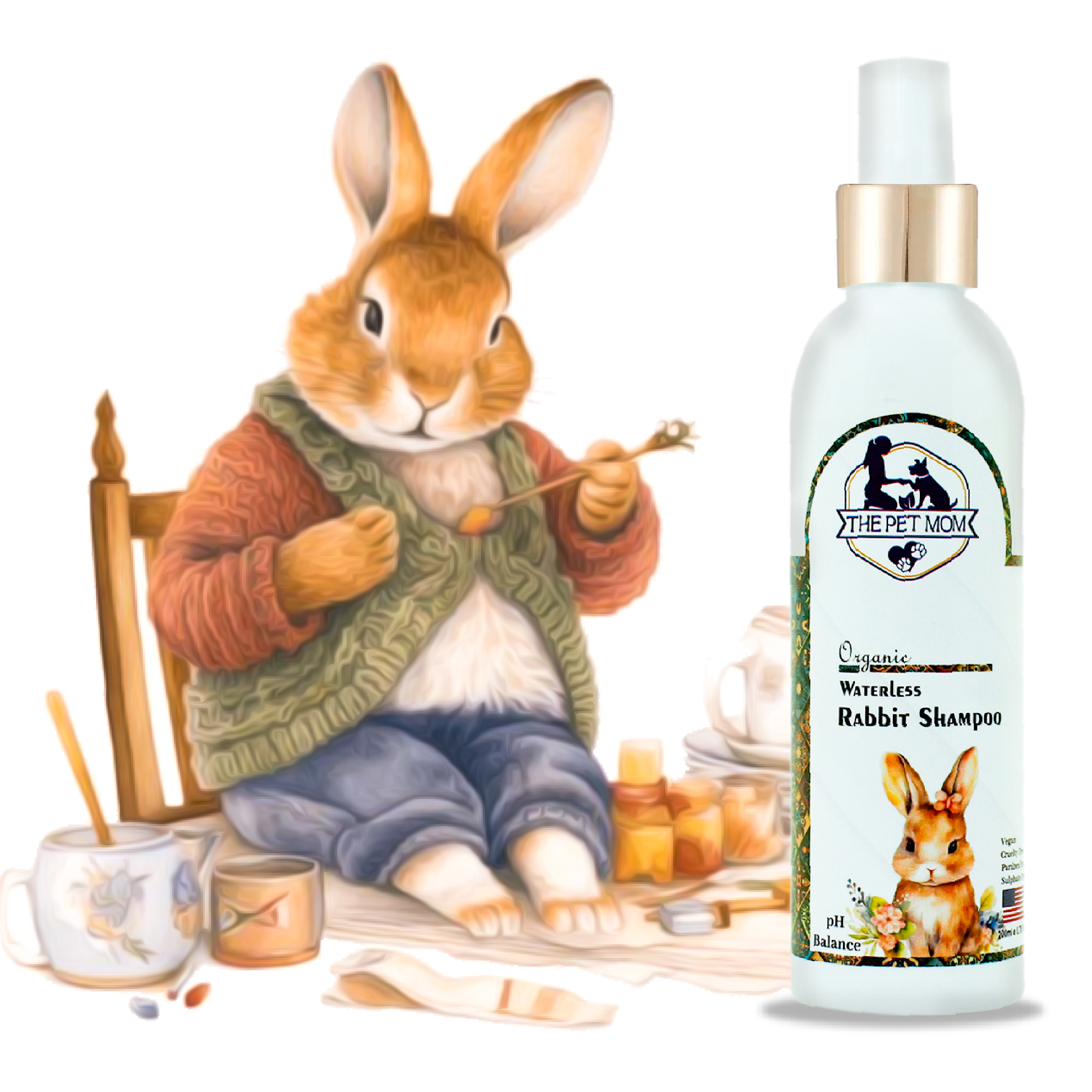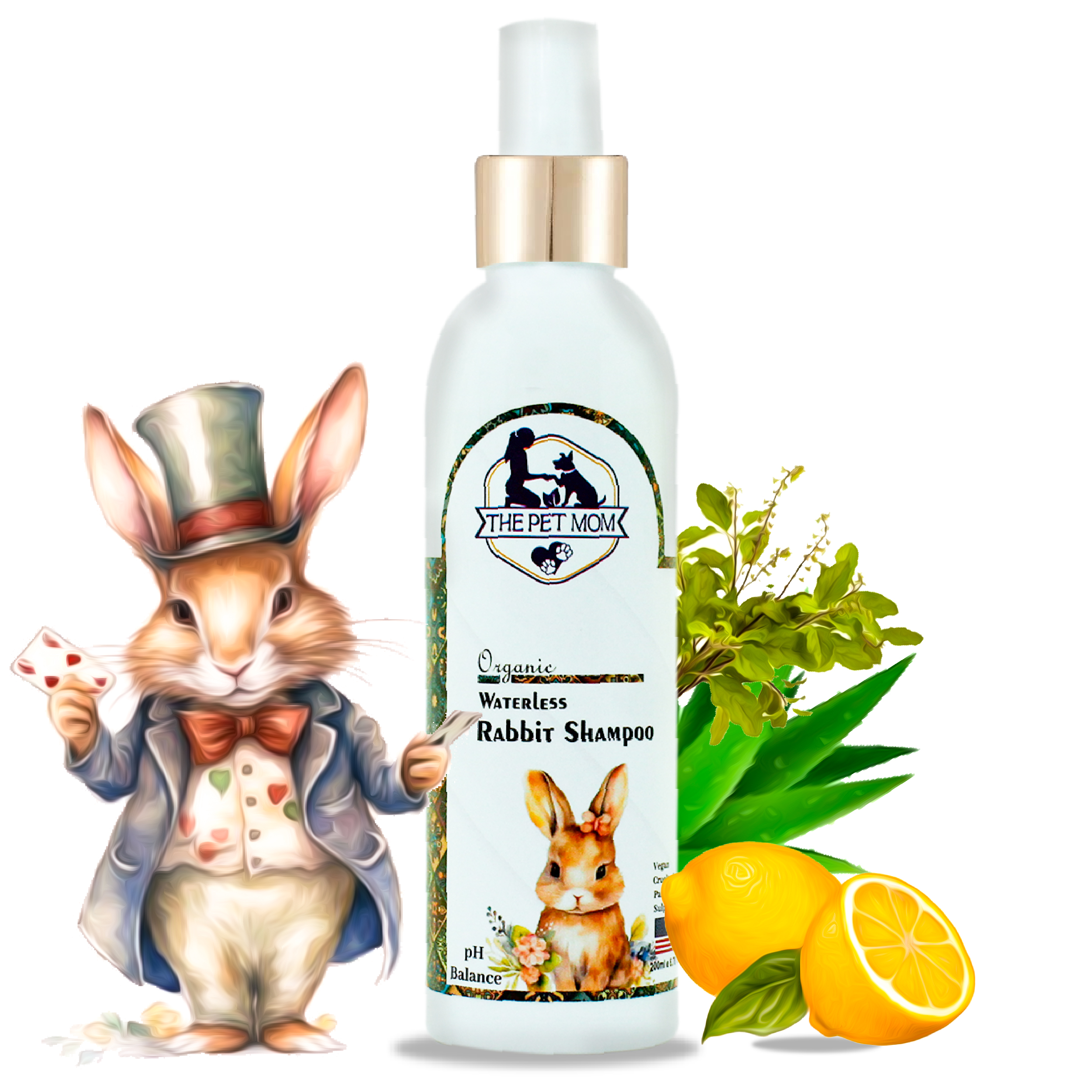 Directions For Use:Just spray this Organic Waterless Rabbit Shampoo all over your pet’s body. Avoid eyes and ears. Rub thoroughly with a dry towel, and it’s all done. Your rabbit will be all clean with a refreshing fragrance.